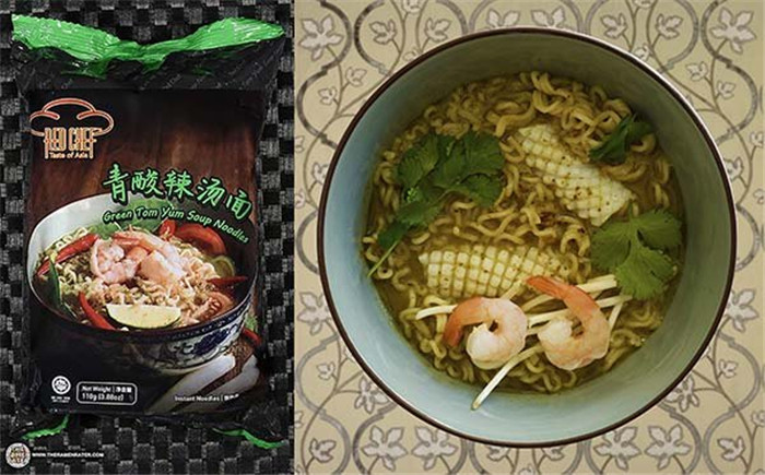 寿桃方便面首次入围榜单。和常见的方便面面饼不同,寿桃使用的是直面条。Lienesch本人也十分痴迷于这种直面条,在前两年的榜单中也有不少使用直面条的方便面。寿桃的这款冬阴功拉面汤汁浓郁但不失清爽,柠檬草和虾的完美配合丰富了整体的食感。