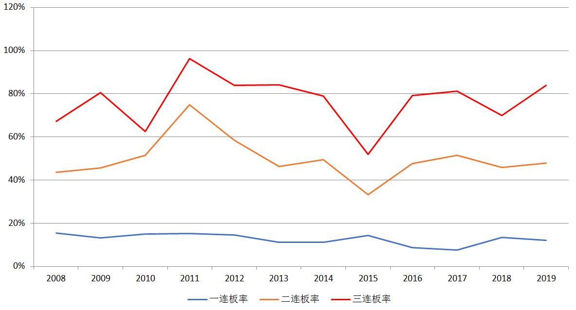(其中一连板率是指个股首日自然涨停(非一字板或T字涨停),下一个交易日继续涨停的概率;二连板率指个股两连自然涨停后第三个交易日继续涨停的概率,以此类推。)