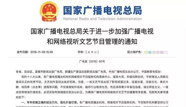正所谓,限薪令下无“勇夫”!2018年11月,国家广播电视总局(以下简称“广电总局”)在网站公布了《关于进一步加强广播电视和网络视听文艺节目管理的通知》(以下简称《通知》),遏制影视圈追星炒星的不良倾向,严格控制综艺节目嘉宾片酬,加大网络剧治理力度。在薪酬方面,《通知》规定,各电视上星综合频道19:30至22:30播出的综艺节目要提前向总局报备嘉宾姓名、片酬、成本占比等信息,每个节目全部嘉宾总片酬不得超过节目总成本的40%,主要嘉宾片酬不得超过嘉宾总片酬的70%。