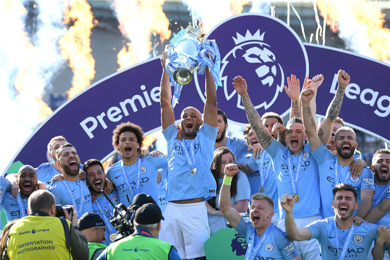 北京时间5月12日晚,2018-19赛季英超收官战,曼城客场4-1大胜布莱顿,阿圭罗、拉波尔特、马赫雷斯和京多安连入4球。曼城以14连胜力压利物浦一分,成功卫冕,这是曼城第4次夺得英超冠军,也是第6个顶级联赛冠军。至此,英超迎来大结局,曼城、利物浦、切尔西和托特纳姆热刺晋级欧冠,阿森纳和曼联获得欧联杯资格,降级球队为卡迪夫城、富勒姆和哈德斯菲尔德。