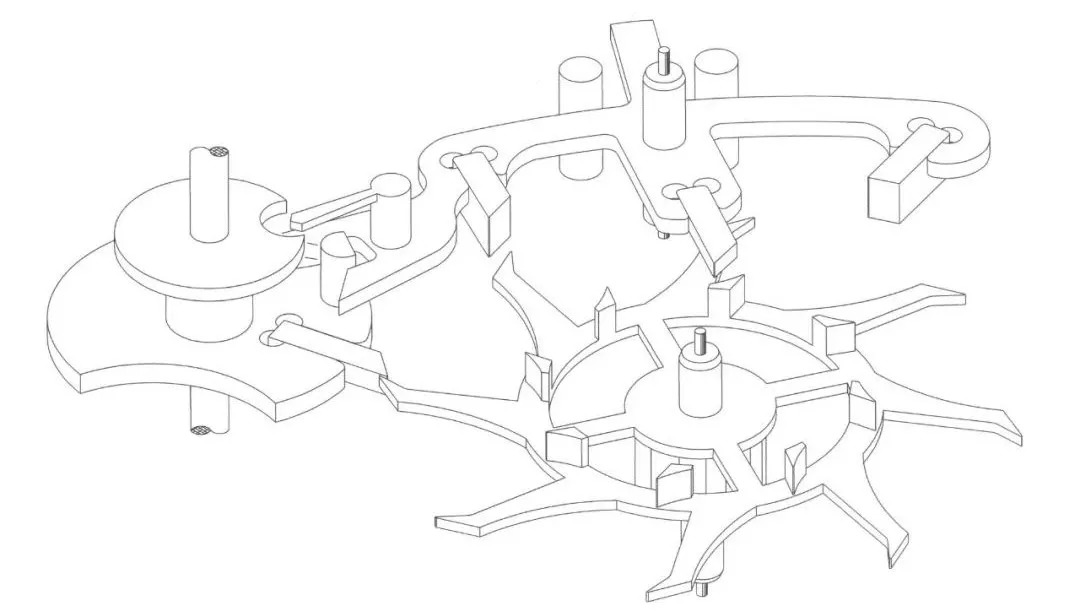 同轴擒纵的精髓之处,是把传统杠杆擒纵运作时的“面接触”改为点接触,从而消除滑动摩擦,理论上不仅提升了精准性,也减少了润滑油的使用。