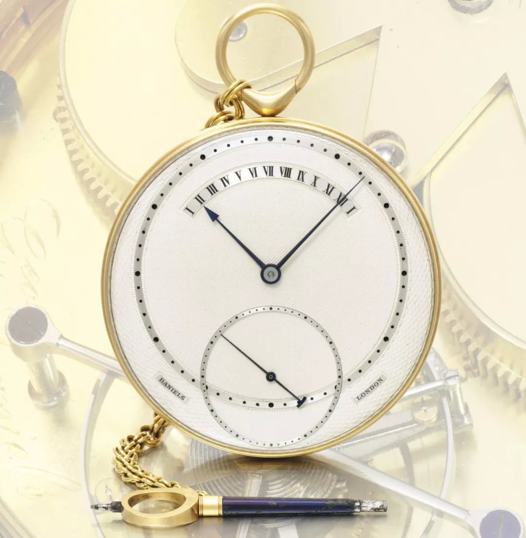 George Daniels亲手制作的一些重要作品正是在这次拍卖中被拍出的,价格最高的是他那枚著名的“去火星旅行”可以携带的“Space Traveller”怀表,拍出130多万英镑。