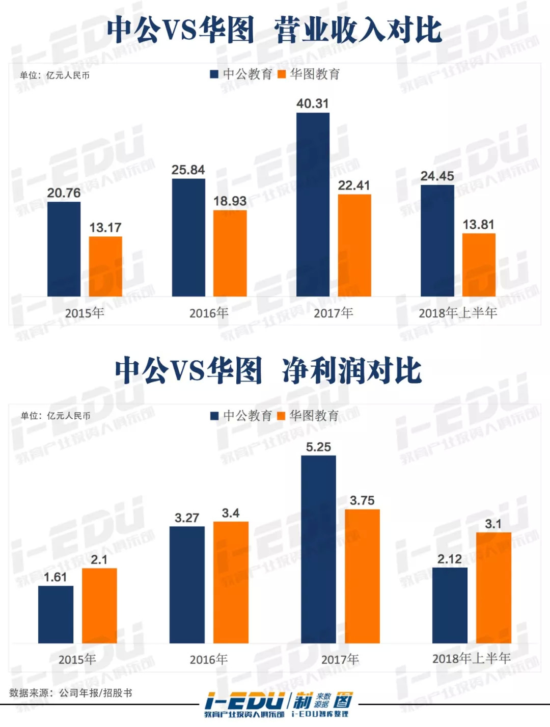 早2年成立的中公教育此前一直与资本市场绝缘。与华图想登陆资本市场,处处碰壁但不断努力不同,中公好像并没有过多的动作,但就在去年想要借壳登陆亚夏汽车开始,似乎中公教育已经走在了华图的前面,而且营收与净利上,差距进一步拉大。