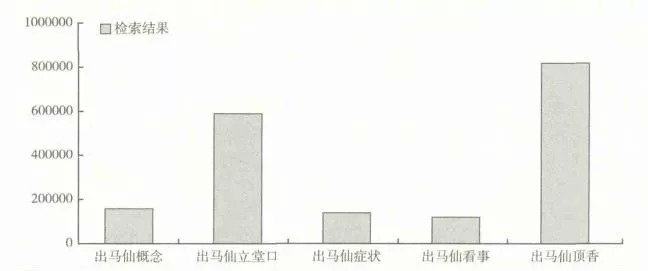 ▲必应搜索上查找和“出马仙儿”相关的关键词数量统计 | 来源:《互联网时代萨满教的公众关注及存在形态研究》