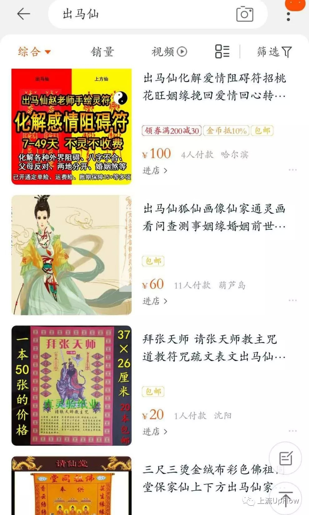 ▲在某宝上搜索关键词,居然能找到千万家店铺,可见出马仙儿也是与时俱进的