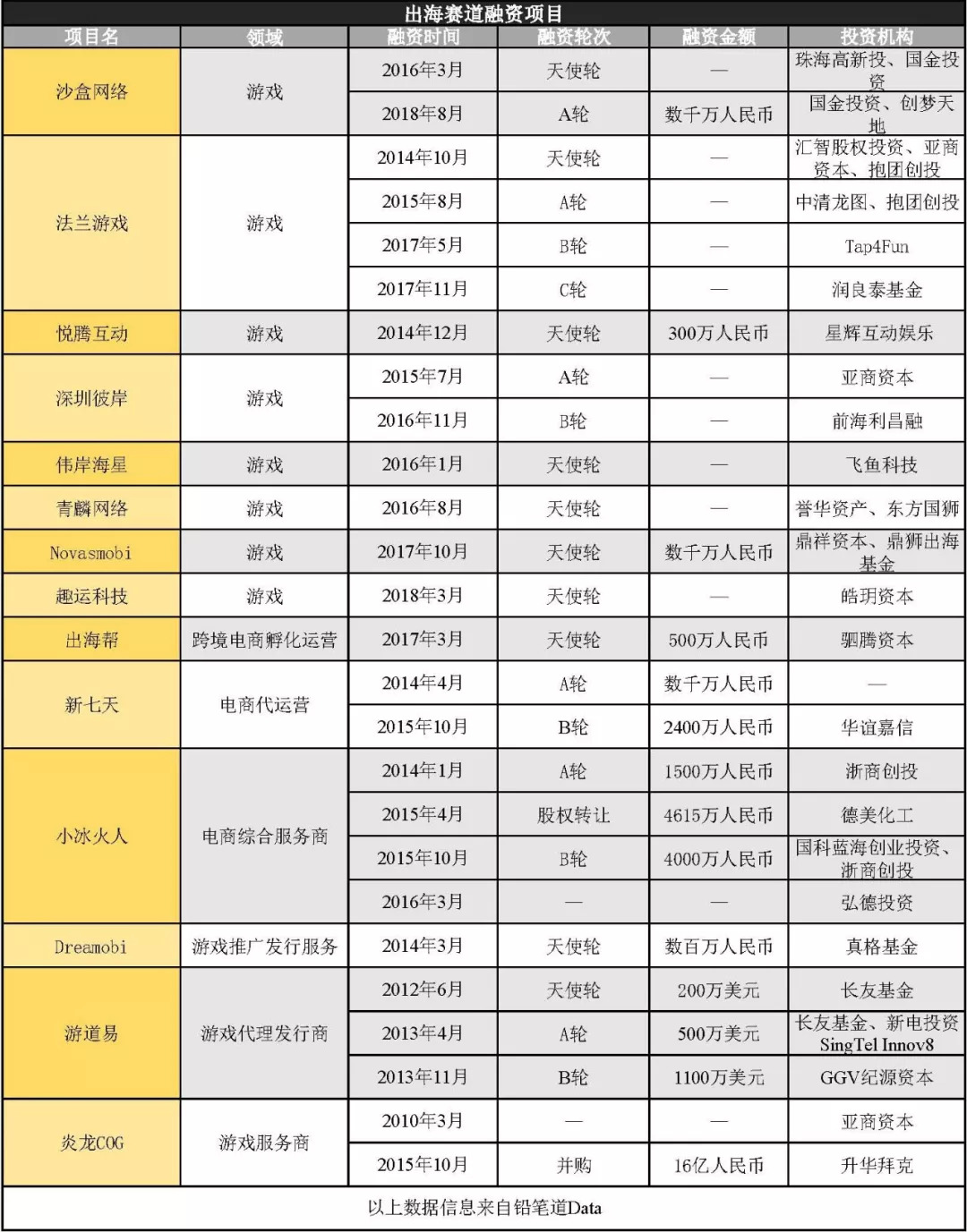 据铅笔道随机统计的14家出海企业,涉及融资达26起。其中,公开披露的融资额达千万以上的项目有9起,出海企业的融资轮次大部分在A轮之前。