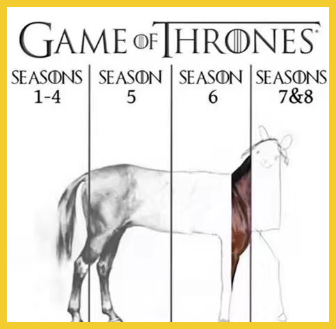 如果说根据原著改编的前几季为我们展示了《冰与火之歌》庞大、复杂的世界观,那编剧原创的后几季就是在删繁就简,平衡各方力量,强行将故事的悬念聚焦在铁王座的争夺上。▼