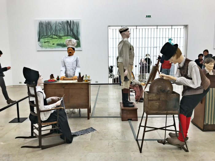 评委会还特别提及了墨西哥艺术家Teresa Margolles、尼日利亚艺术家Otobong Nkanga以及比利时馆。值得注意的是,比利时馆实际上也是威尼斯双年展的首个国家馆,成立于1907年。首届威尼斯双年展于1895年举办,其宗旨是展示全球各地的最新艺术。随着参展的艺术家越来越多,主办方开始有了成立国家馆的想法。在今年的双年展上,比利时馆展出了一系列可活动或可发声的机械人偶,代表着一系列仿佛在任何一个欧洲古城都能找到的人物形象,比如面点师、画家、琴师、做针线活的妇人,甚至是青铜塑像。“比利时馆为欧洲社会关系较少为人所知的面向提供了一种不一样的视角。”评委会称。