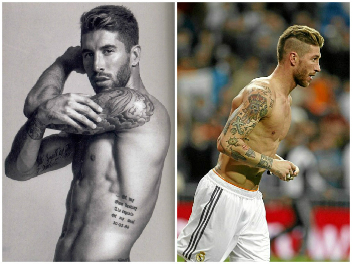 拉莫斯身上的纹身也是数不胜数。14岁的时候,拉莫斯有了他第一个纹身,是一个拿着足球的哥布林妖怪。当时他的父亲知道后快气坏了。后来,拉莫斯就越纹越多,每一处纹身都有着独特的代表意义。像是双亲的名字生日,拉丁名言“生命已逝,精神永存”,纪念祖母的大卫星,耳朵后面的中文字“狼(他最喜欢的动物)”等等。除此之外,他身上还有妻儿兄弟姐妹的名字,就连美国和马德里发生恐怖袭击的日期他也没放过。看来以后,他身上的图案还会越来越多。