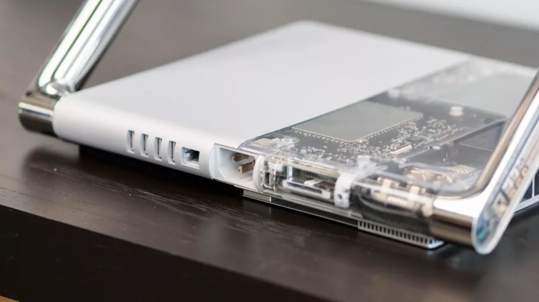 微软利用了弹簧恒定劲度系数的特点,当铰链开始运作时,弹簧的拉力可以抵消屏幕的重量,如此一来,用户只需要一根手指便能抬起屏幕。而没有人会注意到,这块屏幕实际上重达5kg。