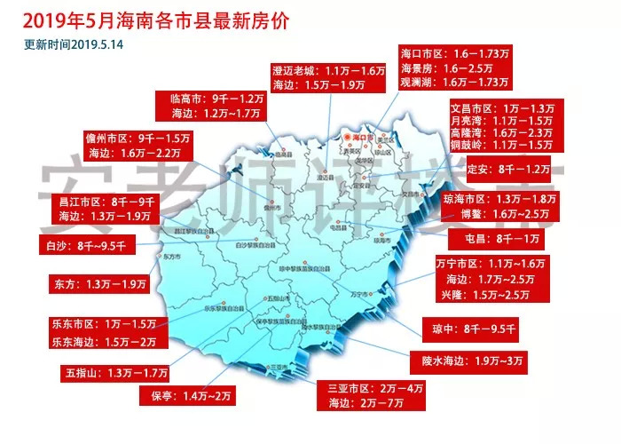 琼海1.3万—2.5万/㎡,文昌1万—2.3万/㎡;