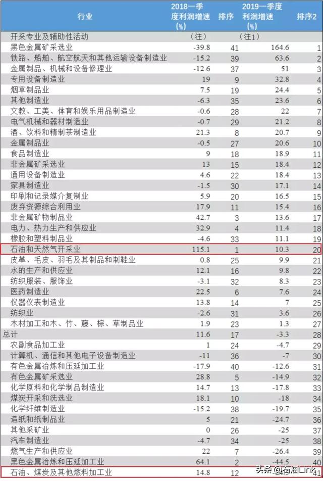 此外,石油、煤炭和其他燃料加工业利润增速下降明显。2018年一季度利润增速为14.8%,位居第九名,今年一季度增速为-54.5%,位居全国倒数第一。