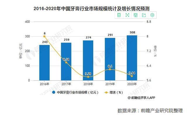 从整个行业的市场规模来看,自从2016年始,国内牙膏市场规模增速就处于下滑趋势,而规模总量虽然稳步增长,但增幅较小。据前瞻产业研究院数据分析预测,2019年至2022年,国内牙膏市场规模总量将从291亿元增长至308亿元,增幅再度下跌,国内牙膏市场规模天花板已经显现,进入存量时代的牙膏企业竞争将进一步加剧,用户忠诚度对于品牌的重要性愈发凸显。