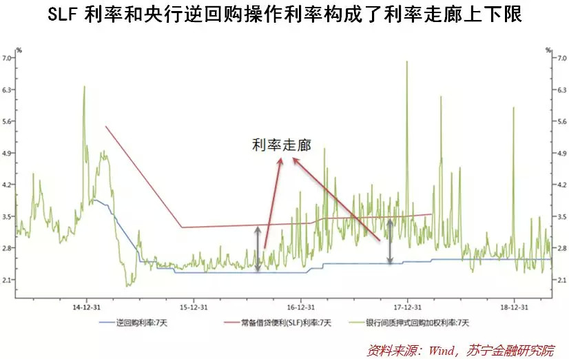 在我国目前的货币政策实践中,一般而言,利率走廊的上限是提供大额、中期流动性的“酸辣粉”(SLF),它的利率较高,当货币市场上利率高于SLF利率时,银行便可以通过SLF直接向央行借钱,因而市场上利率很难持续高于SLF利率。
