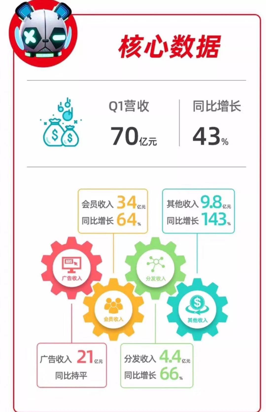 另外,“其他营收”部分堪称可圈可点:这部分主要由游戏、IP授权等垂直业务线组成,达到9.825亿元,占总营收的14%,同比增长143%,这也是“其他营收”连续三个季度同比增速翻番。去年7月,爱奇艺以20亿元全资收购手游厂商天象互娱,后者今年推出的多款游戏持续释放着红利。在5月9日的爱奇艺世界大会上,由主站、奇巴布、爱奇艺泡泡等组成的21个应用服务产品品牌矩阵首次系统亮相,可以预见的是,这部分垂直业务线将持续高速增长。