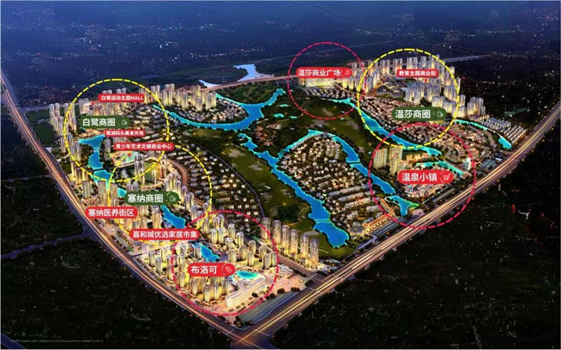 商业方面,嘉和城将重点打造“三核三圈多特色”的商业体系。布洛可区域级商业中心、温泉小镇旅游商业中心、温莎商业广场三大商业核心都将于今年动工。