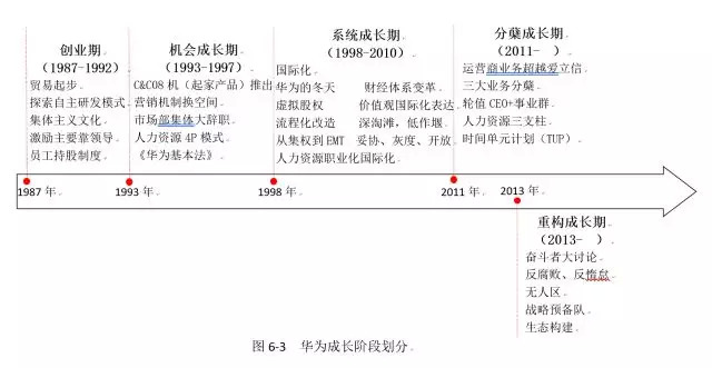 历史地、逻辑地看待华为的成长过程,可以划分为如下阶段(图6-3):
