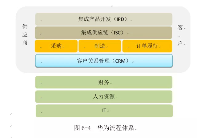 (2)组织流程化改造:集成产品开发(IPD)+集成供应链(ISC)+客户关系管理(CRM)