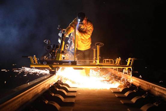 凌晨时分,工作人员进行夜间高铁检修作业