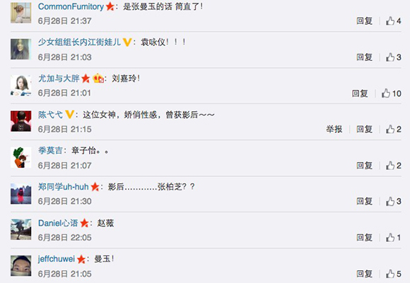 没错,那位重量级大明星就是火到不行的女神舒淇,微博上那些“喊张曼玉的都哭了”。其实,早就在昨晚尔导就已经透露了答案是谁。