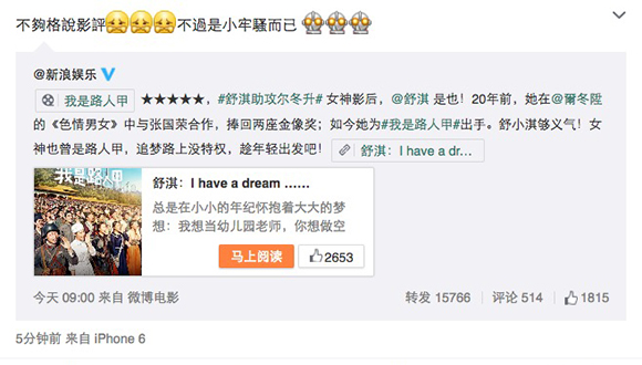 在微博的狂轰滥炸之下,舒淇本人也出面回应了,一句“不够格说影评,不过是小牢骚而已”,可以让网友们的争执停下了吧。