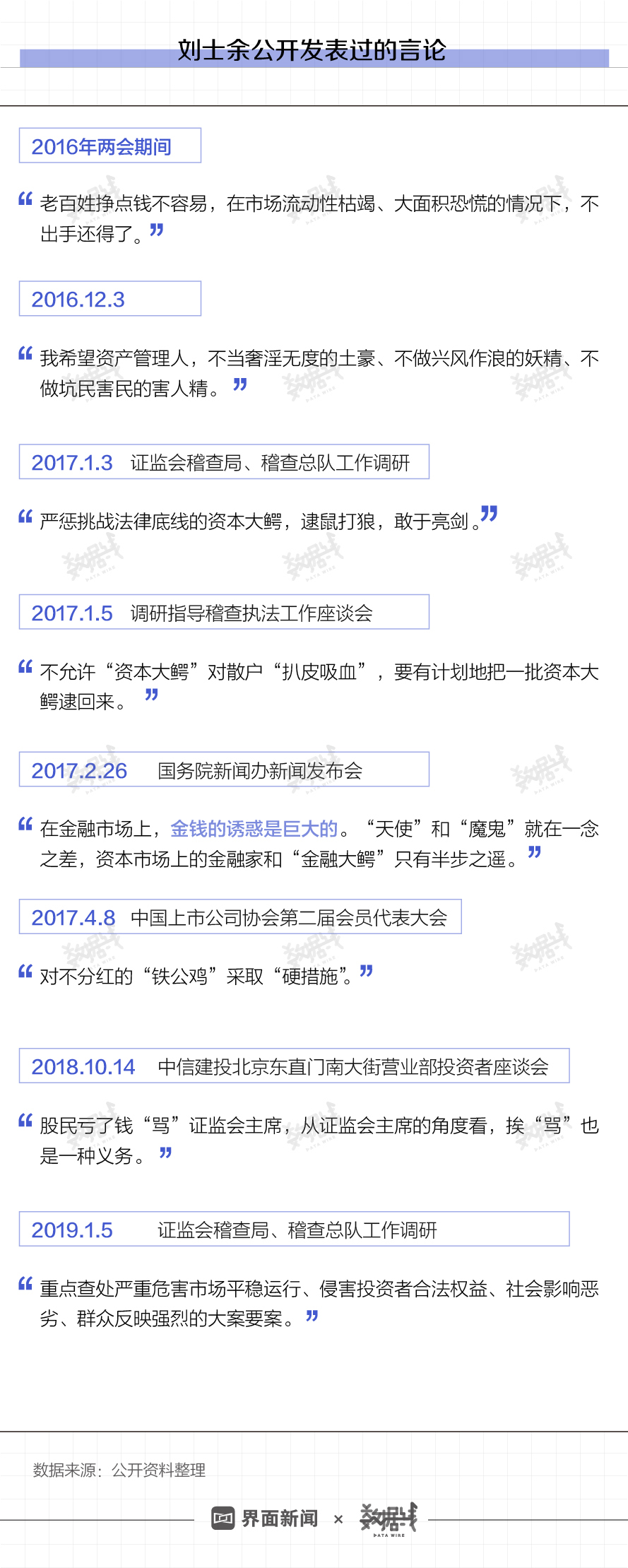 2017年2月26日,刘士余曾公开表示,在金融市场上,金钱的诱惑是巨大的。“天使”和“魔鬼”就在一念之差。
