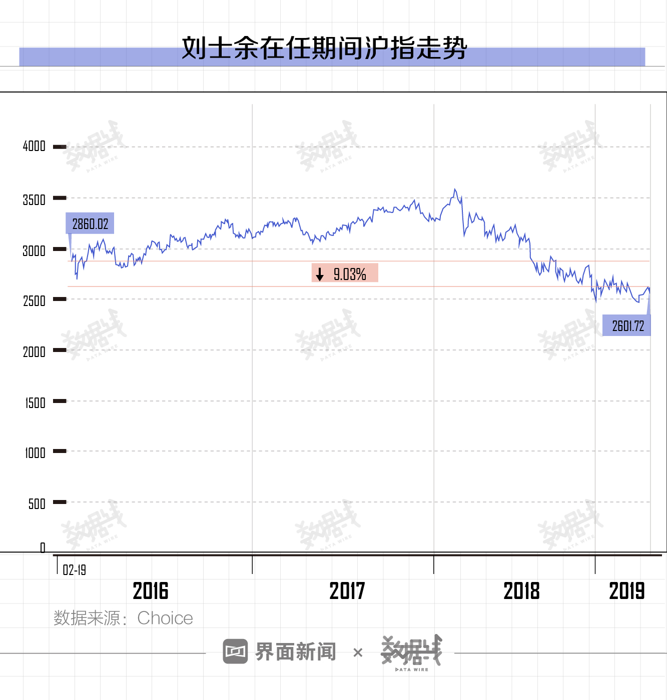 这一时间,距离刘士余卸任中国证监会主席一职还不到四个月。在其任职期间,上证指数跌了9.03%