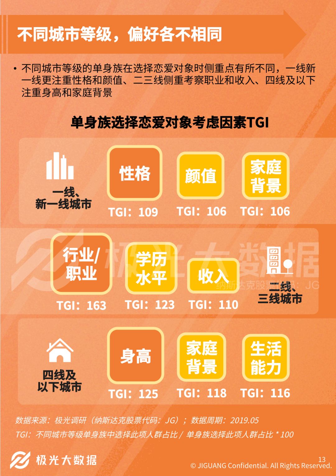 宁愿单身,不愿将就。单身族期待对方性格好、颜值高,二三线城市单身族更看重对方职业和收入水平