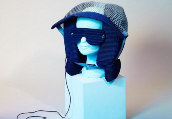 其中最值得一说的就属这只头盔。它兼具了眼罩、靠枕、隐私遮挡帘子的功能,还贴心地拥有一个耳机接入口,可以与手机相连,让你休息的时候还能听音乐。