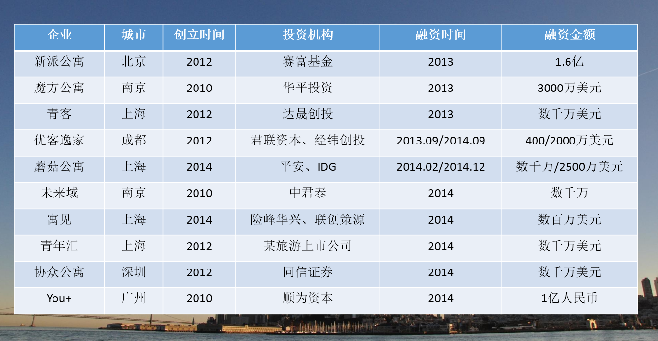 2015年3月23日,上海寓见城市青年公寓获得A轮千万融资,A轮领投方为顺为资本,联创策源跟投。