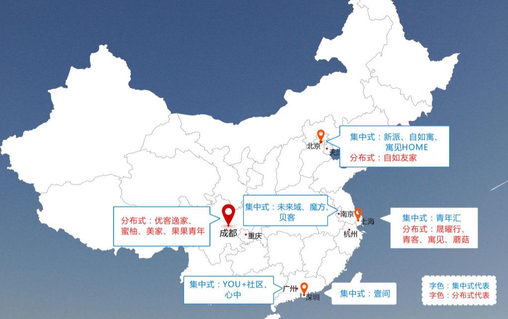 分布式:品牌公寓运营方在普通生活小区里分散拿下个人房东的房源,对房间进行装修装配后,以公寓品牌对外出租。出租分两种形态,一种是整租,租进来是三居,租出去就是整套三居,一种是合租,租进来是三居,租出去是三四间房(一般把客厅再隔出一间来,也就是N+1),然后又分为不同价位档次。