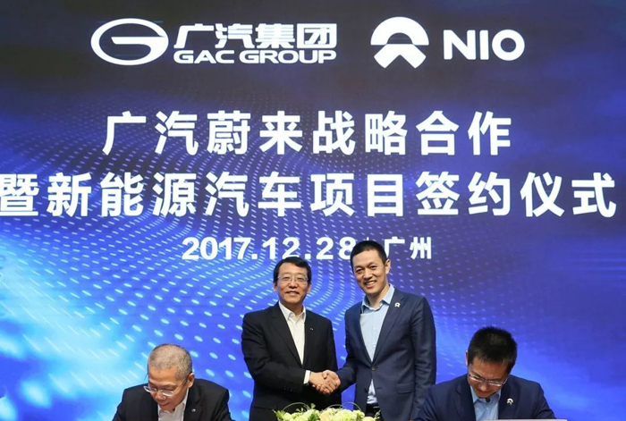 2017年12月27日晚,广汽集团发布公告,宣布经董事会会议决议,广汽集团、广汽新能源与上海蔚来汽车及湖北长江蔚来新能源产业发展基金将共同出资设立广汽蔚来新能源汽车有限公司。