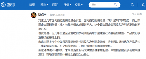 「雪球用户:高端白酒竞争格局将如何发展?」