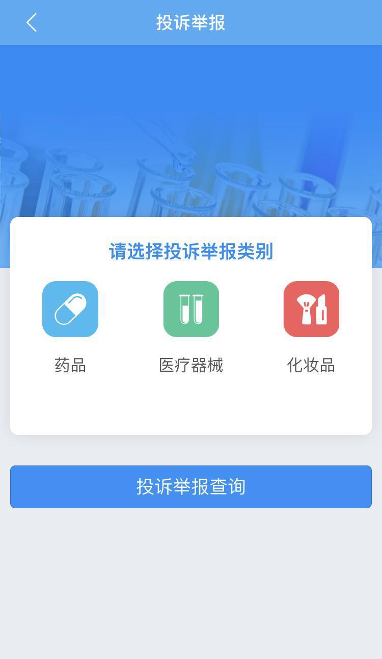 APP内的投诉举报功能则分为药品、医疗器械和化妆品三个类别,需要投诉人提供个人姓名或单位名称,以及有效证件号码。