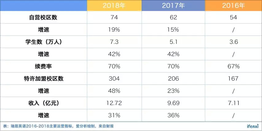根据财报,截至2018年底,自营校区达到74家,近两年增速19%,分布于北京、上海、广州、深圳以及无锡;学员数量达到了7.3万人次,近两年增速42%;续费率也有小幅提升,从67%提升到了70%。