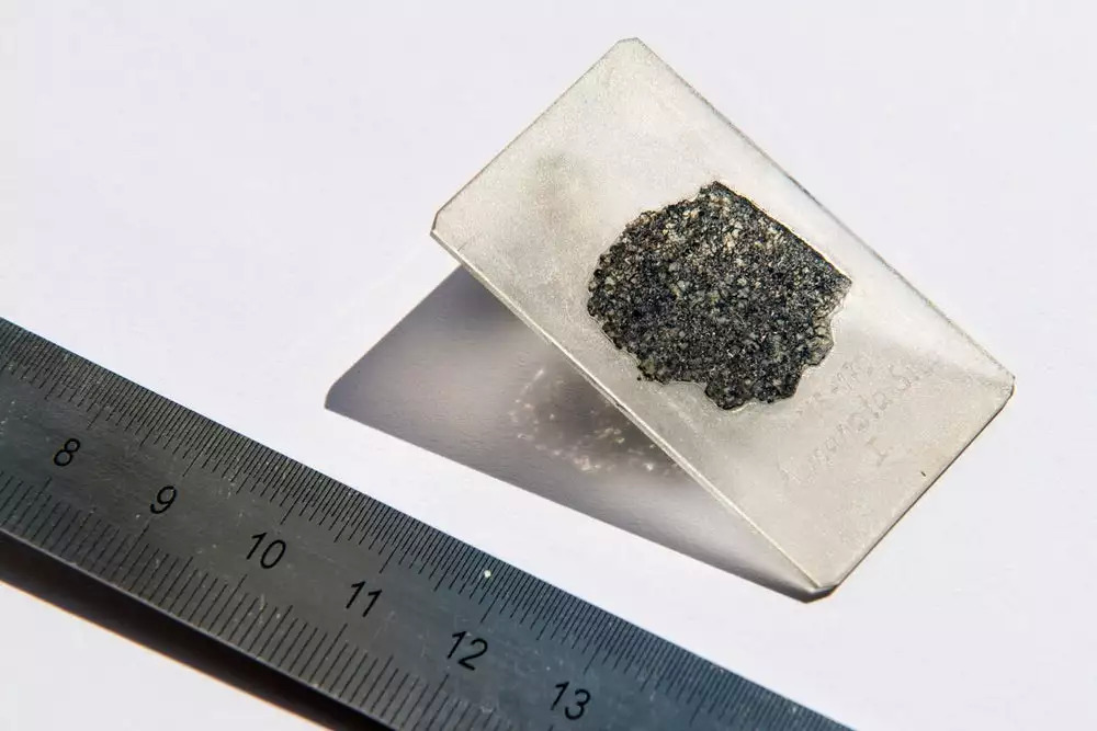 图为2008 TC3小行星的陨石样本切片。经研究发现,陨石内的钻石须由大型星体孕育产生。(供图:瑞士联邦理工学院/)