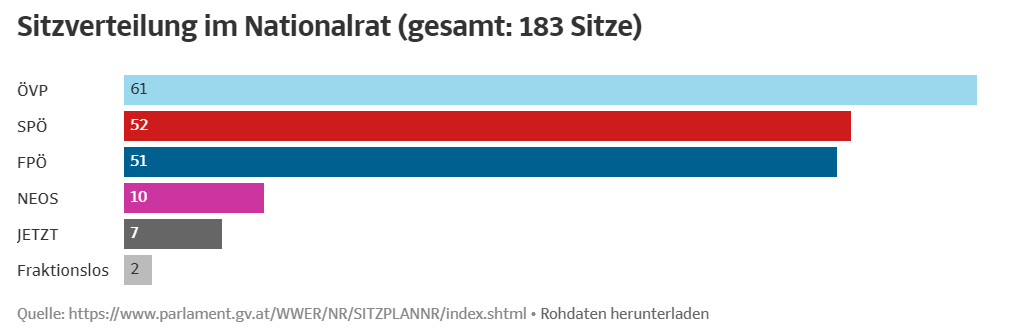 在183个议席中,人民党只占61席,其余自上而下为社民党、自由党、新奥地利党、现在党以及无所属议员。