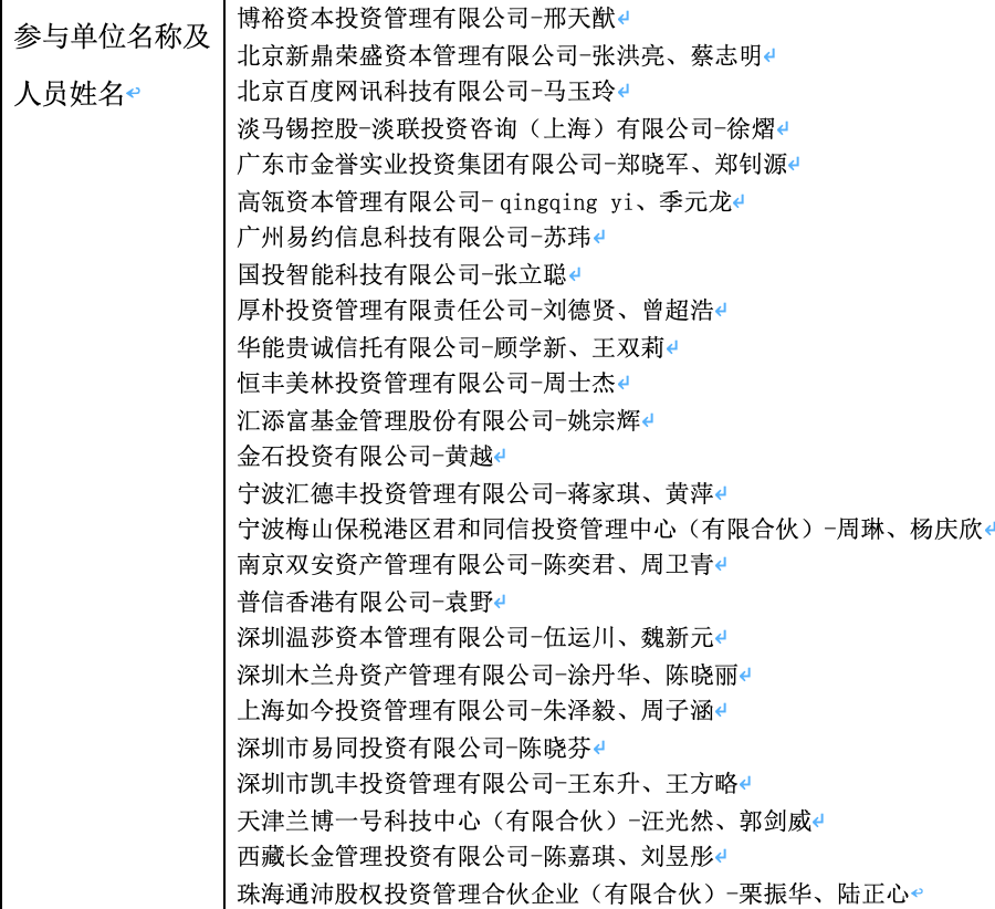 当日晚间,格力电器公告称,参加本次见面会的公司包括百度、淡马锡、高瓴资本、厚朴投资、华能信托、恒丰美林、金石投资等公司的相关人员。