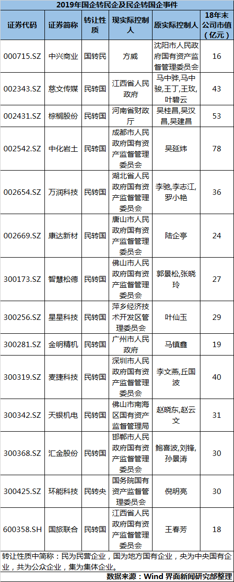 界面新闻同时对2019年至今的国企与民企间身份相互转换的情况予以统计。