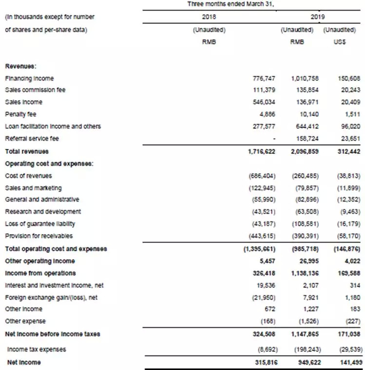 总体来看,趣店一季度经营收入稳步增长。在大白汽车和机构资金成本降低后,趣店主营业务成本大幅降低,总体成本的降低使得趣店净利润大幅上升。