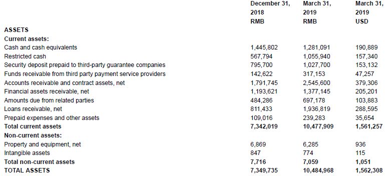 截至一季度末,360金融总资产为104.85亿元,较2018年末环比增长42.66%。总资产的增长主要是由受限现金、第三方保证金、应收账款与合同资产和应收贷款规模大幅提升引起的。