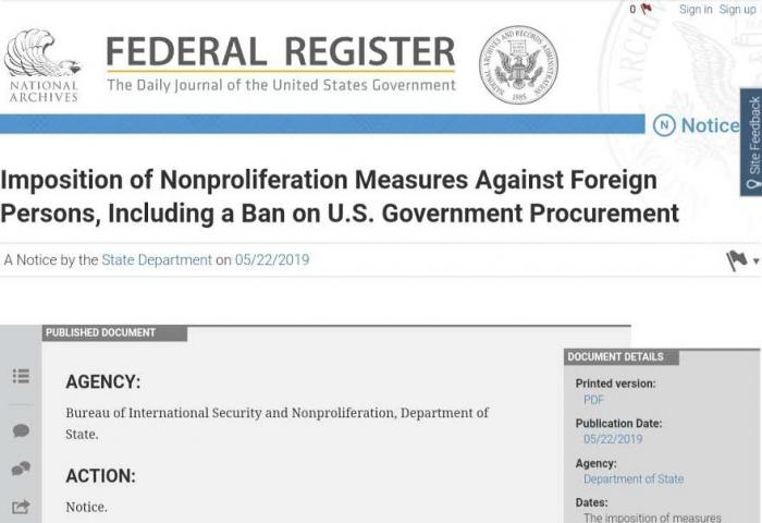 美国国务院通知联邦纪事报称,上述制裁已于5月14日生效,如果不延长,将在两年内到期。它们将阻止任何美国公司或政府机构与受制裁的实体开展业务。