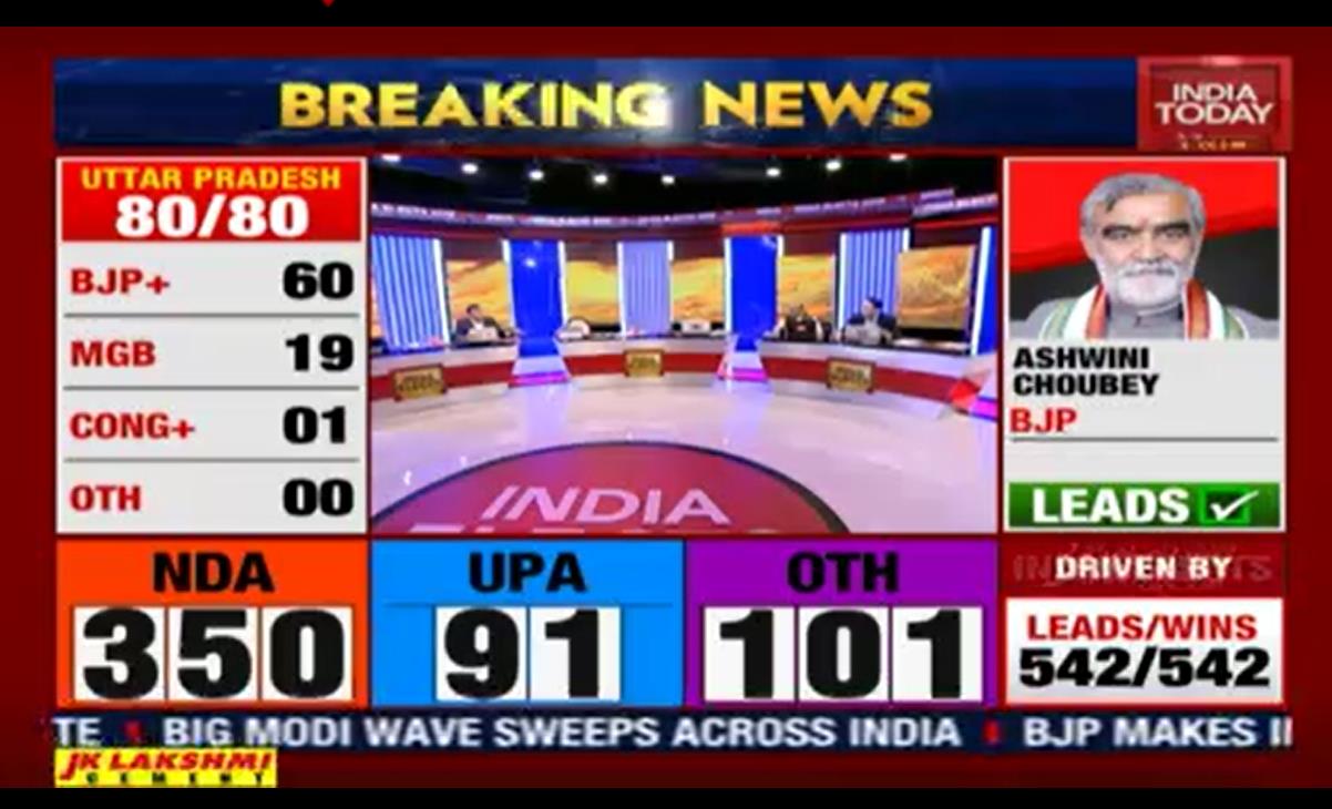 据《纽约时报》5月23日报道,印度选举委员会周四下午公布的初步统计结果显示,印人党至少拿下人民院(议会下院)中的300席,远超过赢得大选所需的272席。