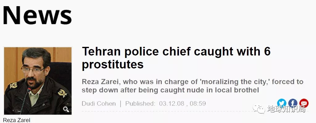 然而叛徒总是出在内部。2008年德黑兰市警察局长Reza Zarei嫖娼案引爆舆论,因为该局长平时负责群众的道德建设,还弄了个“公共安全计划”,打击青年的不雅行为,结果自己是一个妓院常客。