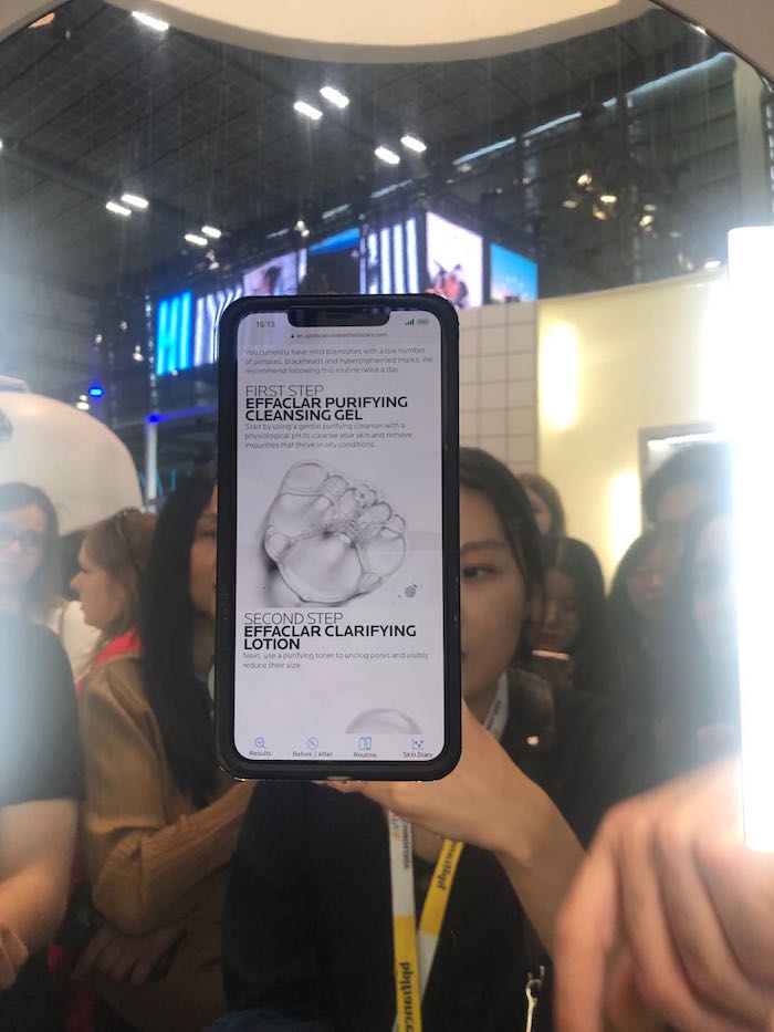黑金唇膏是欧莱雅中国主动找到消费者需求的例子,实际上,不仅是化妆品,护肤品也有同样的目标。最近想要实现这个目标的尝试,是欧莱雅旗下的活性健康护肤品牌理肤泉和天猫合作开发的油痘肌在线检测系统“艾菲卡”(Effaclar Spotscan),这项检测系统也在VIVA TECH进行了发布。