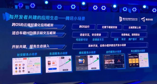 同时,腾讯车联在“生态车联网解决方案”中,推出了一套跨OS的、云端轻量化的开发者应用框架——腾讯小场景。