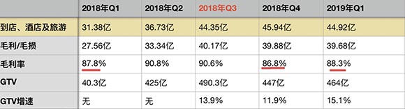 对比同比和环比可以看到,美团的到店、酒旅业务比较稳定,毛利率一直稳定在88%左右。