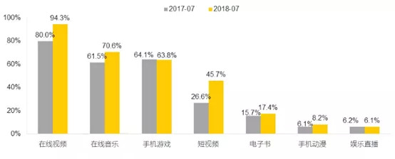 图3,2018年7月泛娱乐相关行业活跃渗透率