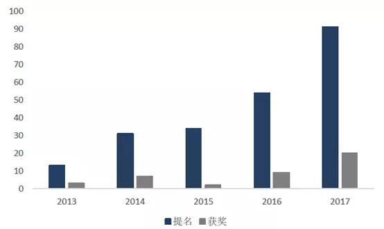 图6,Netflix艾美奖提名及获奖数量
