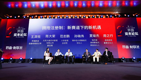 在圆桌论坛《拥抱注册制:新赛道下的新机遇》中,界面新闻金融组高级记者王淇悦担任圆桌主持,与北京大器资本管理有限公司副总裁陈大荣、小多金服总经理范志鹏、瑞华会计师事务所合伙人孙晓伟、锦天城律师事务所高级合伙人夏瑜杰、奥纬咨询董事合伙人周之行就中介机构角色变化、注册制对信息披露的要求重点、如何识别拟上市企业的创新属性与价值展开讨论。